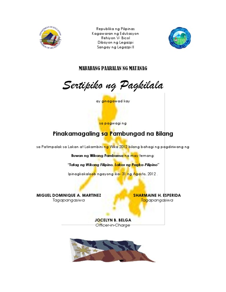 Here are a number of highest rated Sertipiko Ng Pagkilala pictures upon internet. Ang Wikang Filipino ay Wikang Panlahat Ilaw at Lakas sa Tuwid na Landas. Intermission Number Isa pa pong pampasiglang bilang ang inihanda ng mga piling magaaral mula sa Baitang III-VI Para sa Unang Baitang.