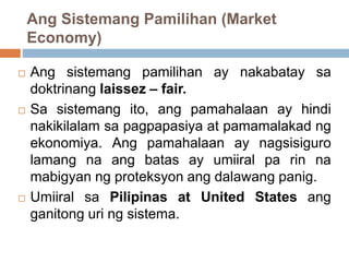 Wuriasih Mei 04 2022. Aralin 12 Iba T Ibang Anyo Ng Pamilihan. Ang sistemang pang-ekonomiya economic system ay sistema ng produksyon at distribusyon ng mga produkto at serbisyo sa loob ng isang lipunan o.