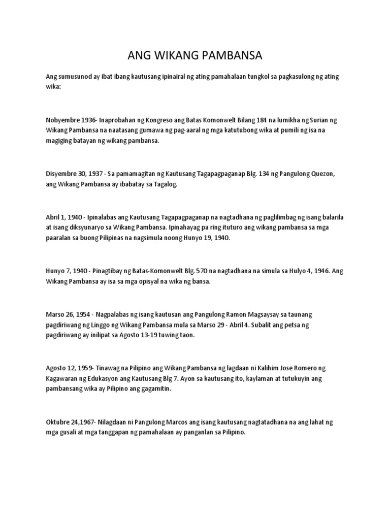 Dahil bumabangon pa lamang ang Pilipinas nang mga panahong iyon sumentro sa mga gawaing pang. Study on PSA 570. Ang Wikang Pambansa ay isa sa mga opisyal na wika ng bansa.