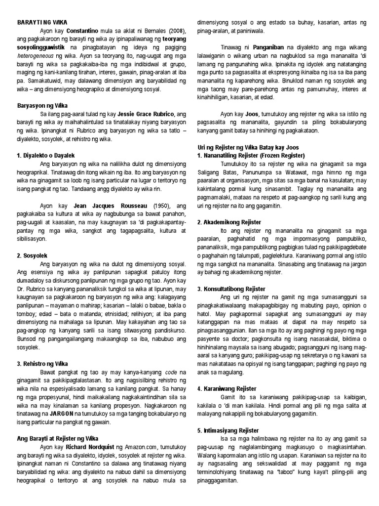 Ano ano kaya ang barayti ng wika. Sinasabing ang wika upang ituring na buhay ay bukas sa pagpasok ng mga bagong salita ayon sa pangangailangan ng panahon. A short summary of this paper.